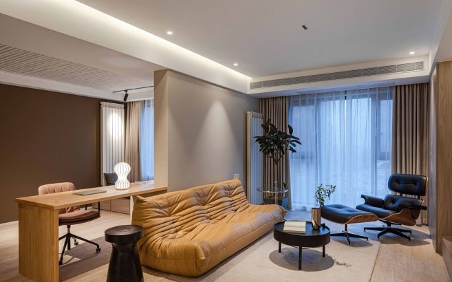 入戶開始至陽臺(tái)的一組地臺(tái),完美的避開了電器電線暴露在外的丑態(tài)。